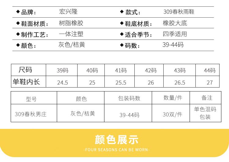 宏兴隆309男款春秋雨鞋